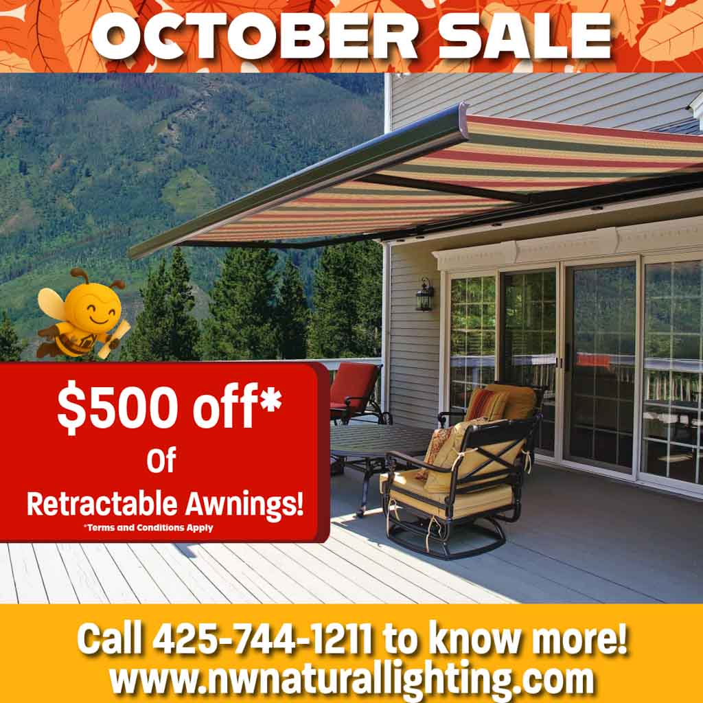As experts in lighting control and delivery, here at NW Natural Lighting we know the difference that strategically-placed shade can make in the enjoyment of your home. Retractable awnings help mitigate direct sunlight and sun glare, assist in temperature control, and transform outdoor areas into entertaining space that can be used year-round.