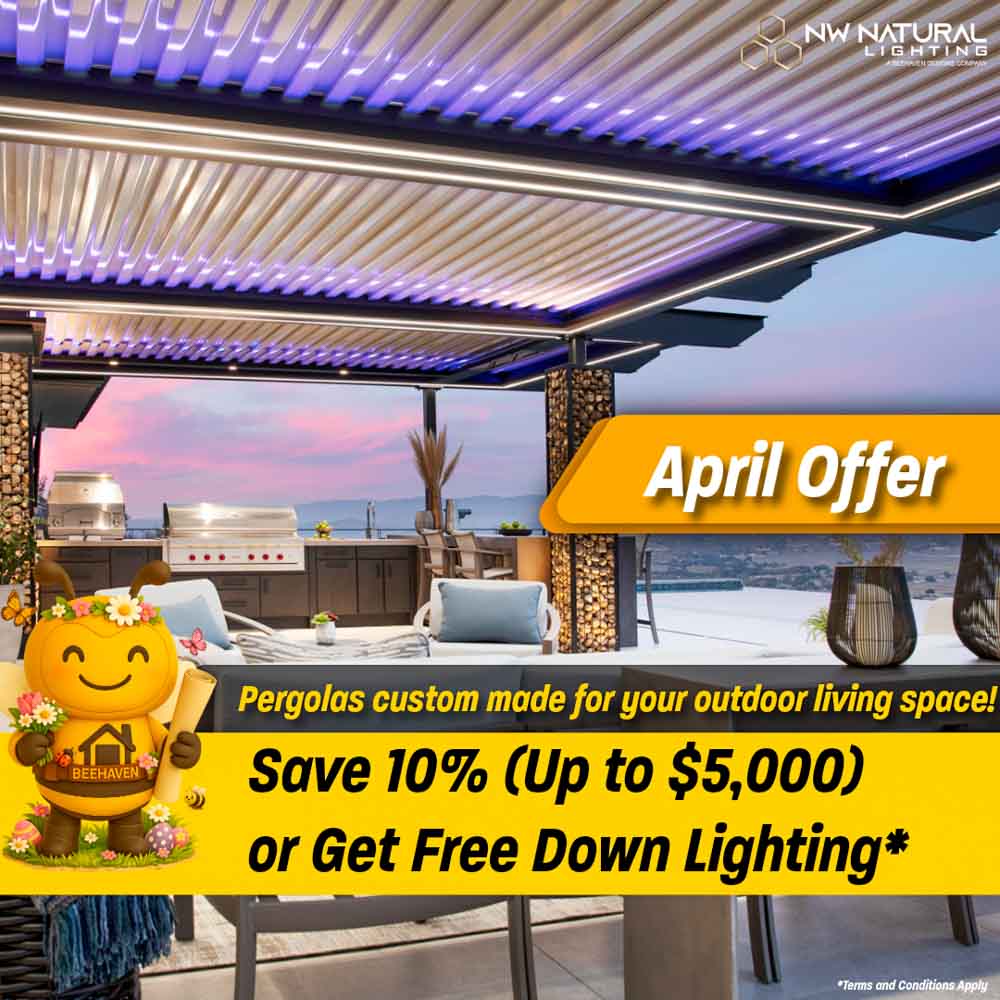Elevate your outdoor living experience with a custom louvered pergola from NW Natural Lighting. Designed for flexibility and style, our motorized pergola systems let you control sunlight, shade, and airflow with the touch of a button. Whether you're entertaining guests or unwinding in solitude, a louvered pergola adds comfort, sophistication, and year-round functionality to your backyard.