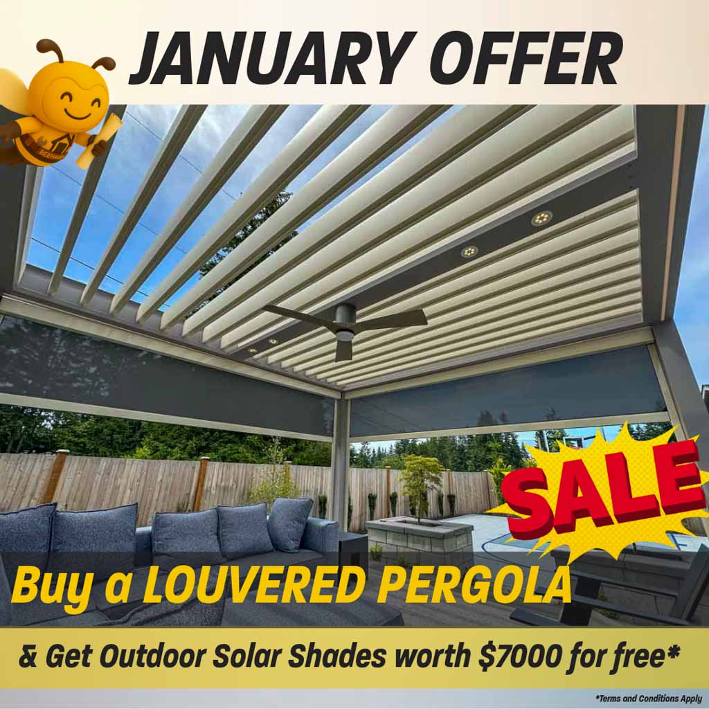 Automated screens for louvered pergolas offer a seamless solution to enhance outdoor living spaces, providing privacy, shade, and protection from insects. These motorized screens can be easily deployed or retracted with the touch of a button, allowing users to adapt to changing weather conditions or privacy needs effortlessly. Crafted from durable materials and precision-engineered for reliability, our screens seamlessly integrate into the pergola, preserving the space’s aesthetic integrity. With customizable options including screen material and color, these screens cater to individual preferences while maintaining functionality, ensuring comfort and enjoyment in outdoor environments. Constructed to withstand outdoor use, our automated screens offer durability and aesthetic appeal over time, with smooth operation and reliability for homeowners and businesses alike. With choices in materials, colors, and sizes, you can create a cohesive look that complements your outdoor decor while meeting practical requirements, enhancing the overall aesthetics of the outdoor space.