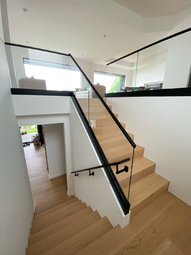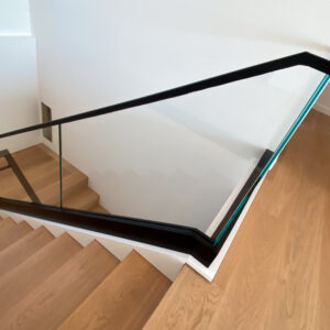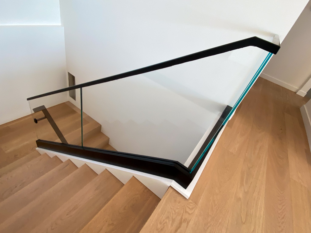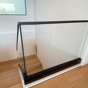 This system is one-of-a-kind and rated the best for views. Shoe base glass takes modern to the highest levels. If you are in the process of building/remodeling your home, there are options to where you can recess the shoe and all you see is the glass coming out of the floor creating an elegant feel to the home.